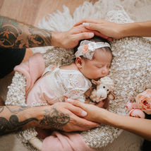 En mis sesiones suelo ofrecer una combinación de fotos de retrato newborn tradicional, con fotografías con un estilo más natural, lifestyle, con mamá, para y familiares que quieran sumarse.